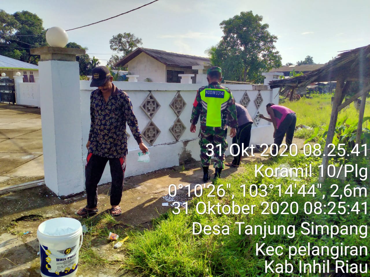 SERIBUPARITNEWS.COM, PELANGIRAN - Babinsa Tanjung Simpang Koramil 10/Pelangiran melaksanakan penyelesaian pendempulan pagar masjid Desa Tanjung Simpang Sabtu (31/10/2020)