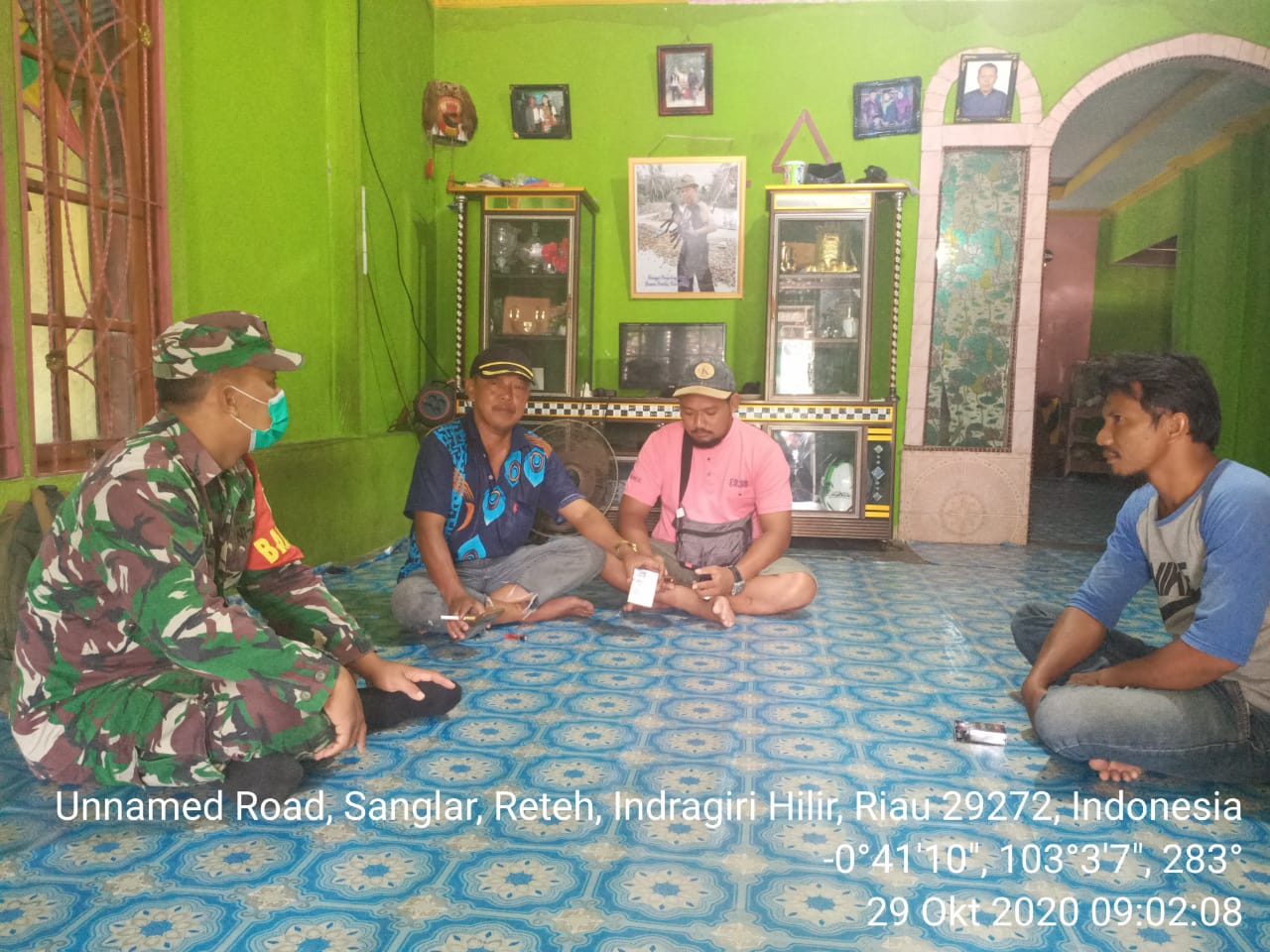 SERIBUPARITNEWS.COM,RETEH - Babinsa Koramil 07 /Reteh Sertu Supriadi melaksanakan Komunikasi Sosial (Komsos) dalam rangka pembinaan teritorial (Binter) dengan warga binaan bertempat di rumah warga di Dsn 2 rw 04 rt 02 sungai Gading, Desa Sanglar  Kecamatan Reteh, Indragiri Hilir, kanis (29/10/2020).