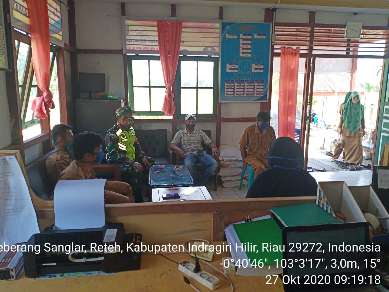 SERIBUPARITNEWS.COM,Seberang Sanglar- Guna menjalin kemanunggalan TNI dengan Rakyat, Sertu Supriadi Babinsa Koramil 07/Reteh Kodim 0314 Indragiri Hilir melaksanakan Komsos dengan Perangkat Desa Sebrang Sanglar, Kecamatan Reteh, Indragiri Hilir, Selasa (27/10/2020).