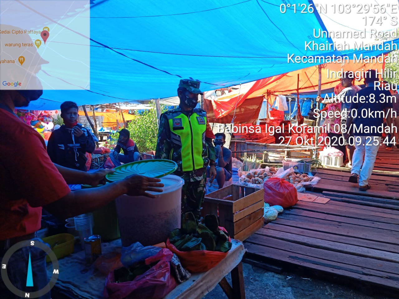 Pedagang keliling mingguan menjadi objek penegakkan disiplin Babinsa Koramil 08/Mandah Kodim 0314/Inhil