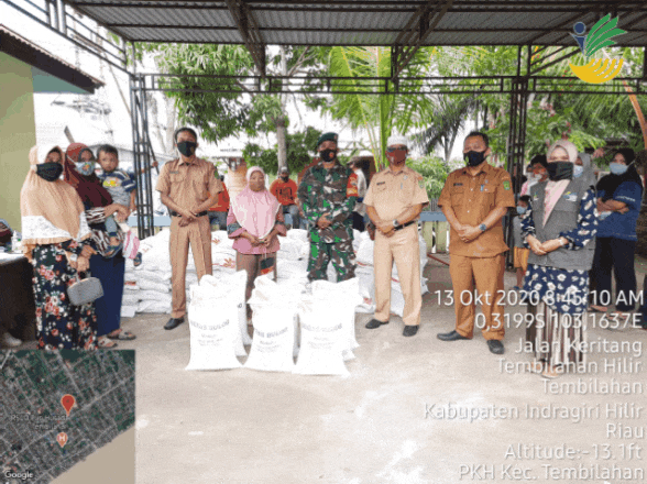 SERIBUPARITNEWS.COM,TEMBILAHAN - Babinsa Tembilahan Hilir Koramil 01 Tembilahan Kodim 0314/Inhil melaksanakan pendampingan dalam penyaluran Bantuan sosial beras (BSB) dia Halaman Kantor Luran Tembilahan Hilir Jalan Prof.M.Yamin,SH Selasa (13/10/2020)
