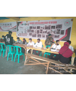 SERIBUPARITNEWS.COM, KATEMAN - Babinsa Koramil 06/Kateman Kodim 0314/Inhil Sertu J.Pasaribu melaksanakan Pengamanan sekaligus penyaluran Bantuan sosial tunai tahap 6 di Kelurahan Tagaraja Rabu (23/09/2020)