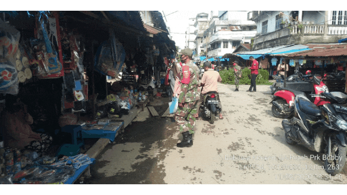 Pendisiplinan Protokol Kesehatan Covid-19 dilakukan di beberapa tempat di seperti Pertokoan, jalan raya, Pasar tradisiona dan tempat tempat Keramaian Kec Reteh Kab Inhil,Jum'at (11/09/2020).
