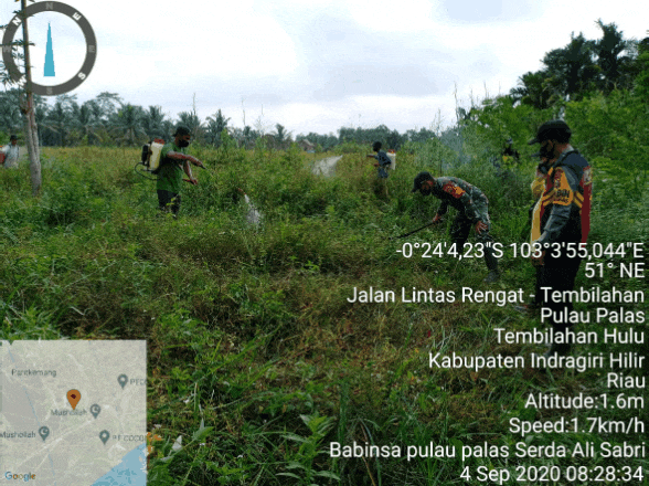 Babinsa Pulau Palas  bersama dengan aparatur desa pulau Palas , Bhabinkamtibmas dan warga sekitar melaksanakan Gotong royong Pembersihan Lahan  kosong untuk nantinya akan ditanami  Terong dan jagung.
