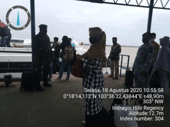 SERIBUPARITNEWS.COM,KATEMAN - Masih dalam nuansa Hari Kemerdekaan RI yang ke -75,personil Koramil 06/Kateman tetap menjalankan tugas dan tanggung menegakkan disiplin protokol kesehatan pencegahan penyebaran Covid - 19 di Pelabuhan Syahbandar/HK Sungai Guntung Selasa (18/08/2020)
