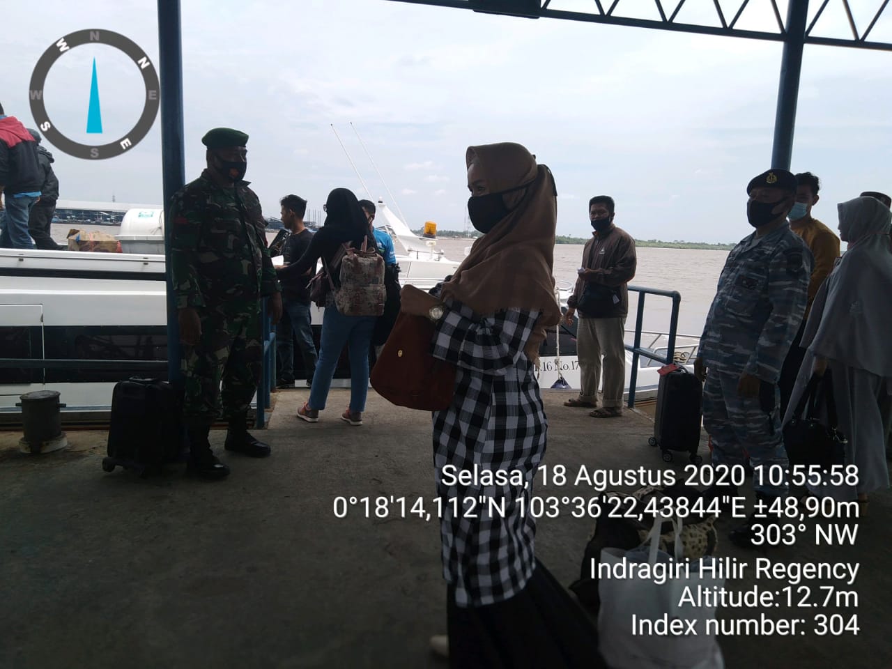g. Pkl 10.55 wib pengecekan terhadap penumpang kapal SB Berkat ilahi tujuan sungai Guntung. Concong luar. Pengecekan kelengkapan surat kesehatan ni terkait