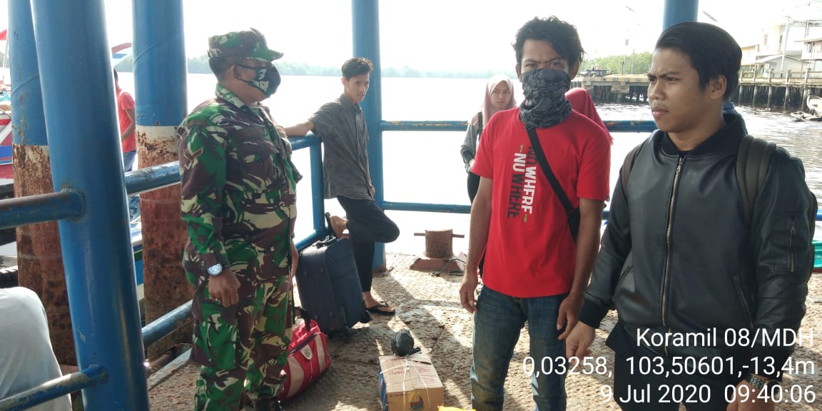 SERIBUPARITNEWS.COM,MANDAH - Babinsa Koramil 08 Mandah Serda Haris Mony melaksanakan Penegakkan disiplin protokol kesehatan di pelabuhan Sembuang Kamis (09/07/2020)