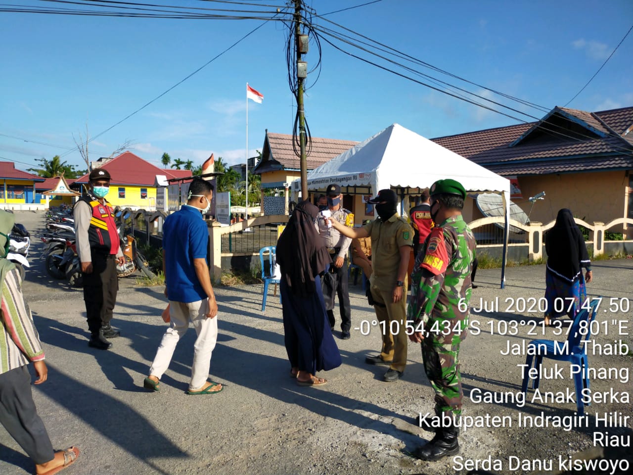 SERIBUPARITNEWS.COM,  Gaung,  Babinsa  Kel. Teluk pinang Koramil 05/Gas Serda Danu Kiswoyo  kembali Melaksanakan Kegiatan sosialisasi Penegakan Disiplin Protokol Kesehatan Pencegahan penyebaran Virus Covid-19 Kec.Gaung Anak Serka Senin, (06/07/2020)