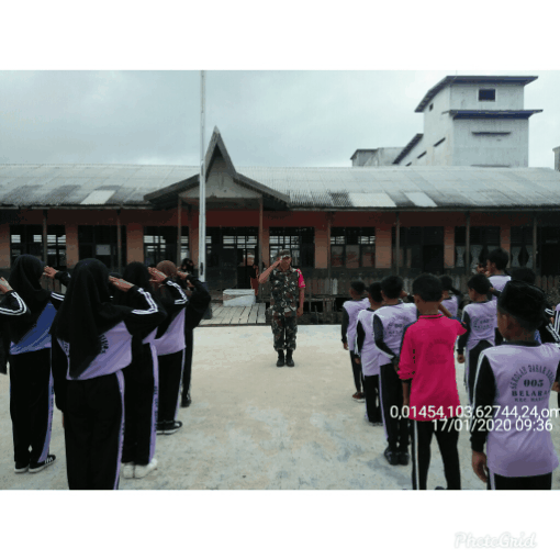 seribuparitnews.com MANDAH - Babinsa Belaras Koramil 08 Mandah Serma Darmansyah latih PBB ( Peraturan Baris Berbaris) bagi Siswa-siswi SD Negeri 005, Desa Belaras Kecamatan Mandah Jumat (17/01/2020).