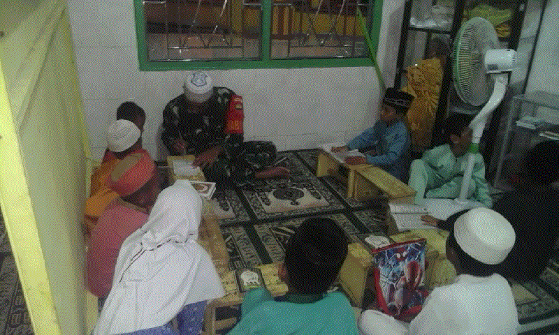Sertu masri mengajarkan anak anak ilmu baca tulis arab beserta tajwidnya. Anak anak sangat antusias mendapat pembelajaran dari Sertu Masri.