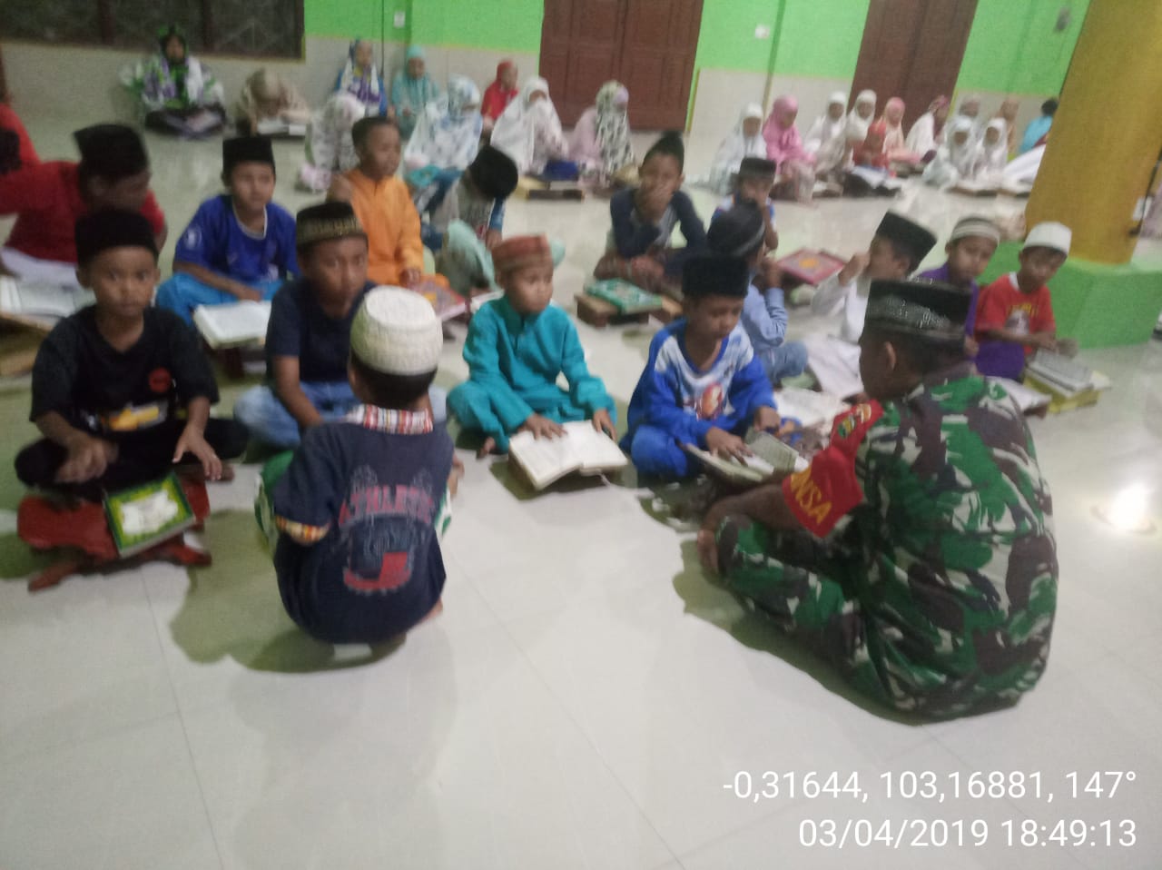 Dalam kegiatan pendampingan mengaji Serma Indra Mukri Babinsa Tembilahan Hilir dibantu Guru pengajar diantaranya Ustad muhammad nazri,  dan Ibu siti hafizoh