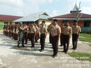 Tembilahan : Babinsa Seberang Tembilahan Selatan Serda M.yasin melatih PBB (Pelajaran Baris Berbaris) di SMA Muhammadiyah Tembilahan (Kamis 07/02/2019) jalan Pendidikan dalam kegiatan tersebut tampak juga mengikuti kegiatan Kepala Sekolah DIDIK DWI PURWANTO.SE dengan Guru pembina YOMI DEWI PUTRI. S.Pd. Kesan dari Kepala Sekolah mengucapkan terimakasih kepada Babinsa yg telah melatih para siswa dan sisiwi Pramuka. Dengan adanya kegiatan tersebut bisa menjadikan generasi muda yg berkualitas dan disiplin.ds