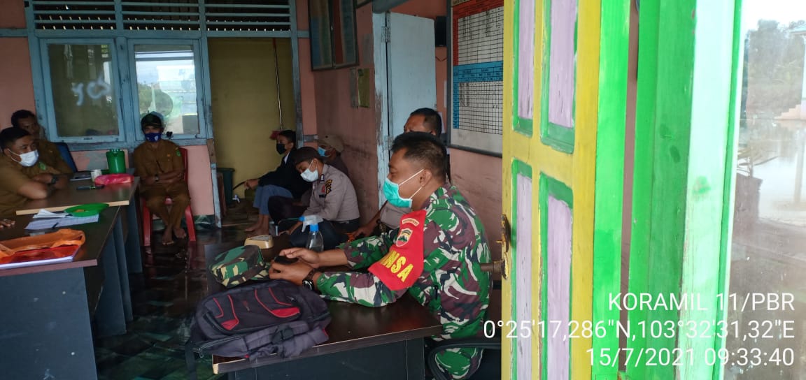 SERIBUPARITNEWS.COM, PULAUBURUNG - Dalam Kunjungan Kerjanya Ke Desa Teluk Nibung, Babinsa Koramil 11/Pulau Burung Kodim 0314/Inhil  Sertu Arif D, Babinkamtibmas dan staf Desa melaksanakan kegiatan Komsos Kamis (15/07/2021)