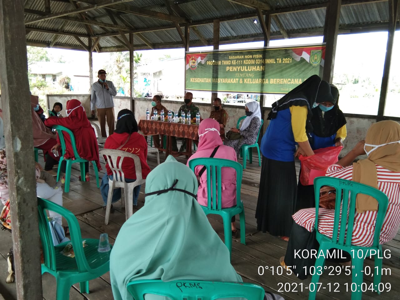 SERIBUPARITNEWS.COM, PELANGIRAN - Selain Melaksanakan Program fisik, Babinsa Koramil 10/PLG Serma Sri wahyono melaksanakan kegiatan sosialisasi KB KES  dalam rangka TMMD Ke -  111 di kelurahan  Pelangiran Kecamatan  Pelangiran ,Kab.Inhil Senin (12/07/2021)