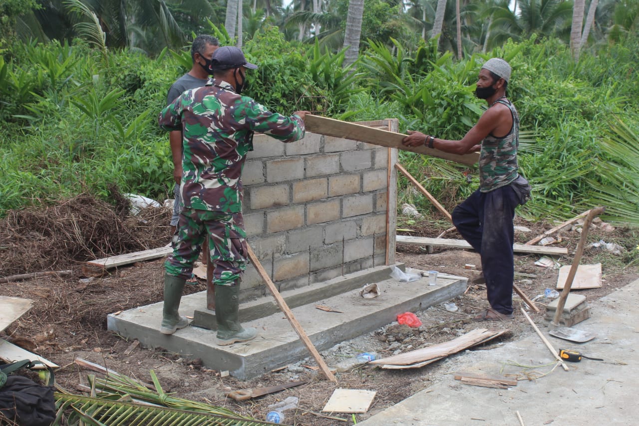 SERIBUPARITNEWS.COM,Indragiri Hilir, - Tidak hanya masyarakatnya saja yang ikut bergotong royong, Kepala Desa Teluk Bunian hari ini ikut turun tangan dalam pengerjaan pembuatan tugu prasasti TMMD ke 111 Kodim 0314/lnhil. Senin, (05/07/2021).