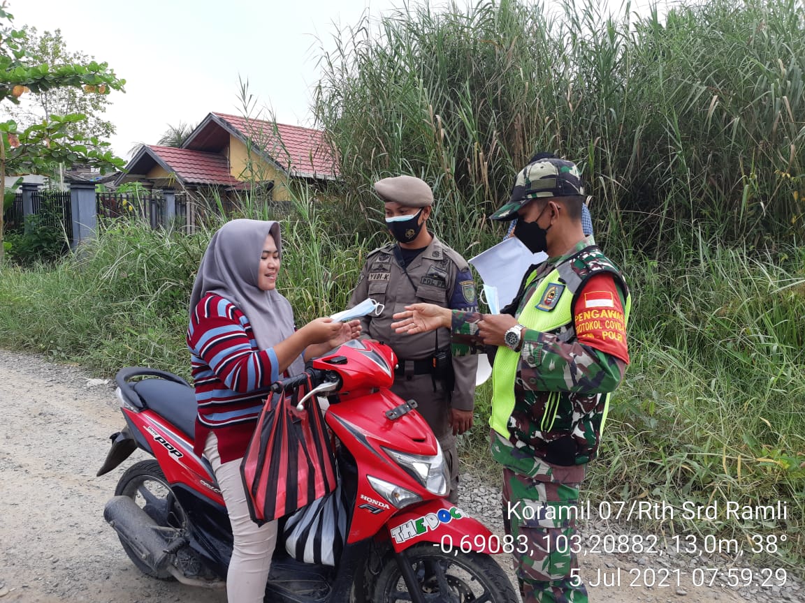 Dalam kesempatan tersebut Babinsa Serma Noviandi dan Serda Ramli dan Anggota Polsek Reteh Aiptu Erpan S, bersama Sat Pol PP Yudi dan Jon, melaksanakan tugas dan tanggung jawab dalam pengamanan di Pos PPKM, yang selalu memberikan himbauan dalam pencegahan penularan virus tersebut dengan cara 5 M, :