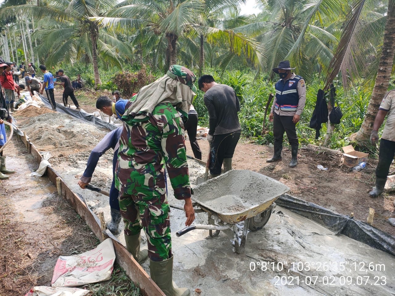 SERIBUPARITNEWS.COM,PELANGIRAN - Masih mengisahkan sejumlah pekerjaan yang harus disiapkan Tim dalam Program TMMD Ke -111, Babinsa Koramil 10/Pelangiran Kodim 0314/Inhil Koptu Chandra Bastian melaksanakan kegiatan komsos gotong royong bersama warga di Desa Terusan beringin jaya Kecamatan Pelangiran ,Kab.Inhil Jumat (02/07/2021)