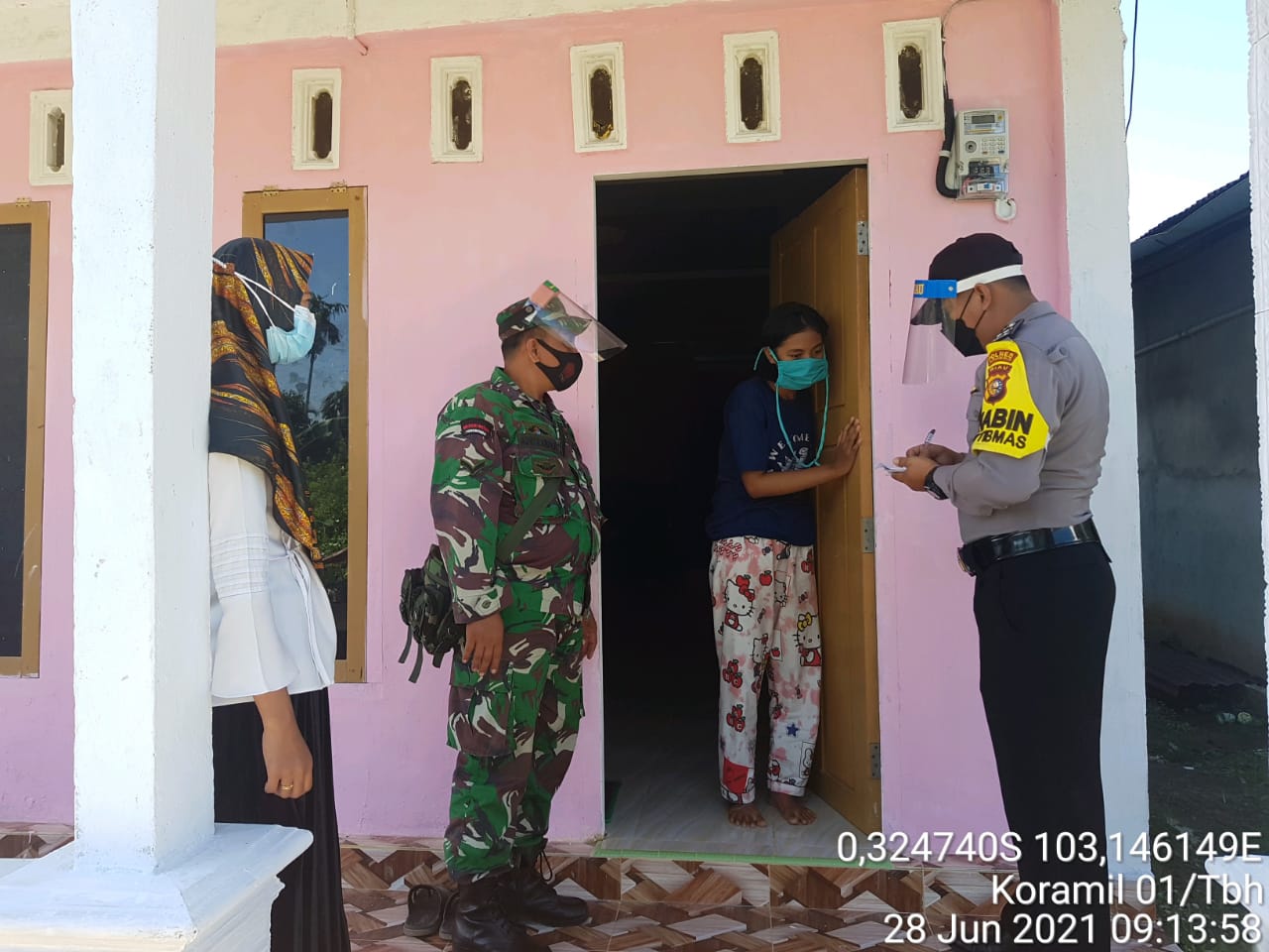 SERIBUPARITNEWS.COM, TEMBILAHAN - Serda Adri Candra Babinsa Koramil 01/Tembilahan bersama tim melaksanakan Tracing,Pemberian Obat dan Evakuasi Pasien Positif Covid 19 ke Islamic Center di Wilayah Kerja Puskesmas Tembilahan Hulu Senin (28/06/2021)