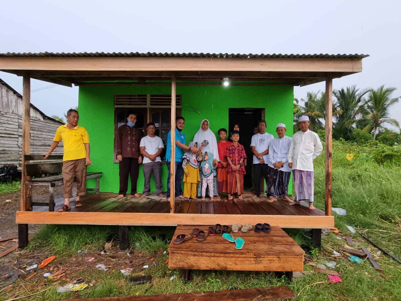 Setelah 4 kali turun Gotong Royong membangun rumah untuk 4 orang anak yatim yang di pelihara ibu kandungnya bernama Misra Dewi. ahirnya hari ini bisa diserahkan, kunci Rumah yang berukuran 5 x 11 Meter dan siap untuk di huni