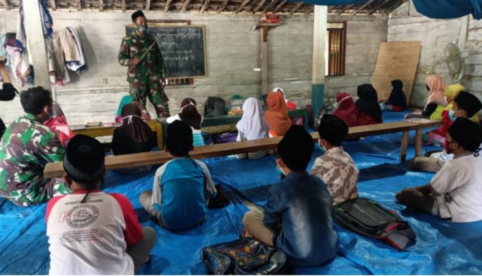 Sejumlah anggota Satgas TMMD terlibat langsung di sejumlah mushala dan Tempat Pendidikan Alquran (TPA) yang ada di desa, untuk membantu mengajar membaca Alquran dan mengaji bersama anak-anak warga Desa teluk Bunian, kecamatan Pelamgiran, kabupaten Inhil, Kamis (24/6/2021).
