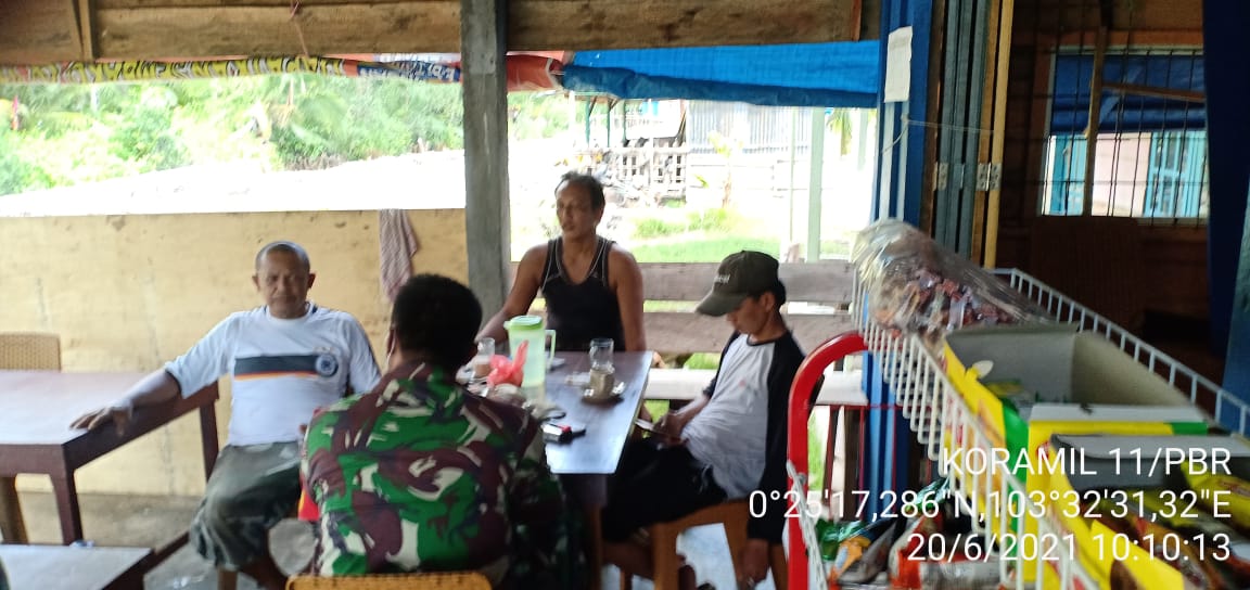 SERIBUPARITNEWS.COM, PULAU BURUNG - Peranan Apkowil Dalam Penerapan Protokol Kesehatan, Hari ini  Babinsa Koramil 11/Pulau Burung Sertu Yanuarsyah Melaksanakan Kegiatan  Penegakkan Disiplin Protokol Kesehatan Minggu (20/06/2021)