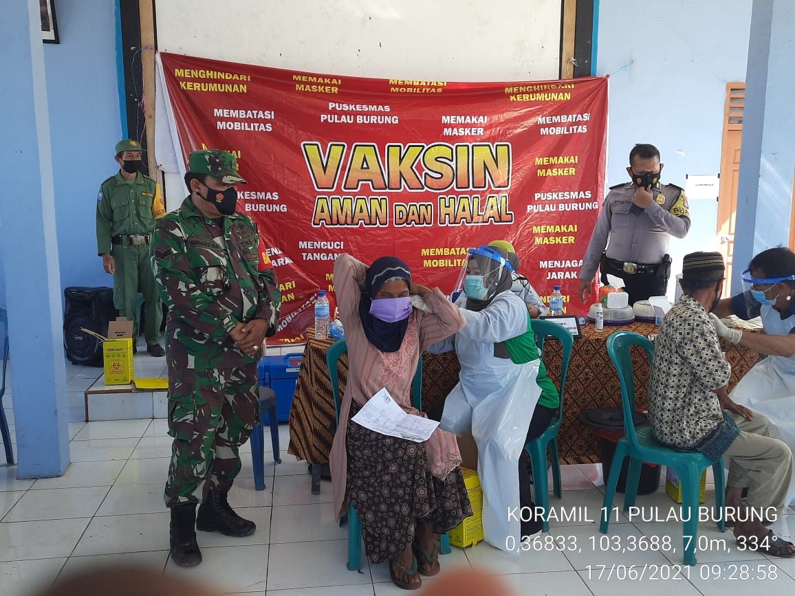 SERIBUPARITNEWS.COM, PULAUBURUNG - Sertu Yanuarsyah Babinsa Koramil 11/Pulau Burung Kodim 0314/Inhil Melaksanakn Pendampingan Vaksin sinovac Covid-19 Dosis 1 semalam Kamis (17/06/2021)