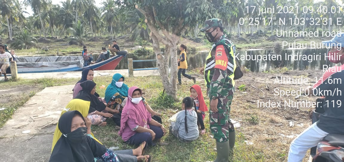 SERIBUPARITNEWS.COM, PULAUBURUNG - Babinsa Koramil 11/Pulau Burung Kodim 0314/Inhil Sertu Arif D melaksanakan Kegiatan Penegakkan Disiplin Protokol Kesehatan Covid-19 Kamis (17/06/2021