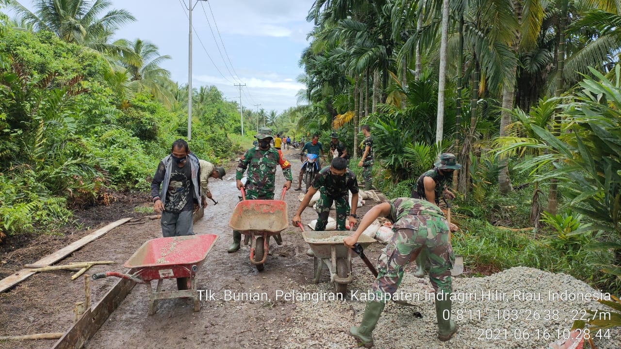 SERIBUPARITNEWS.COM, PELANGIRAN -  Babinsa Koramil 10/Pelangiran Kodim 0314/Inhil Koptu Chandra Bastian melaksanakan Monitoring  kegiatan  TMMD ke 111 bersama warga Rabu (16/06/2021)