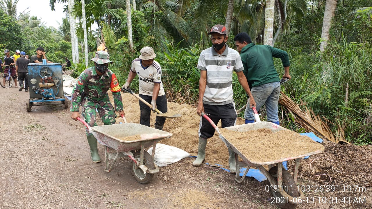 SERIBUPARITNEWS.COM, PELANGIRAN - Babinsa Koramil 10/Pelangiran Kodim 0314/Inhil Koptu Chandra bastian Melaksanakan kegiatan komsos gotong royong bersama warga Minggu (13/06/2021)