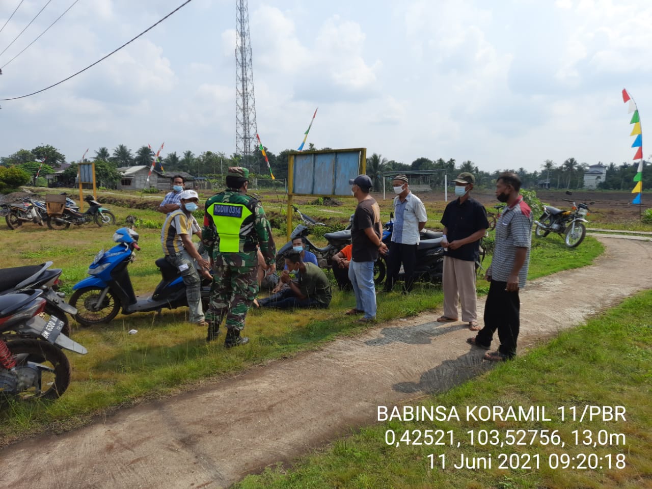 SERIBUPARITNEWS.COM,PULAUBURUNG - Babinsa Koramil 11/Pulau Burung Kodim 0314/Inhil Sertu Yanuarsyah  Melaksanakan Komsos bersama warga Dalam Rangka vaksin serta Penegakan Prokes Covid 19 Jumat (11/06/2021)