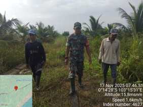Sebagai Upaya Pencegahan Titik Api, Serka Sugianto Babinsa Koramil 10/Pelangiran Melaksanakan Patroli dan Sosialisasi